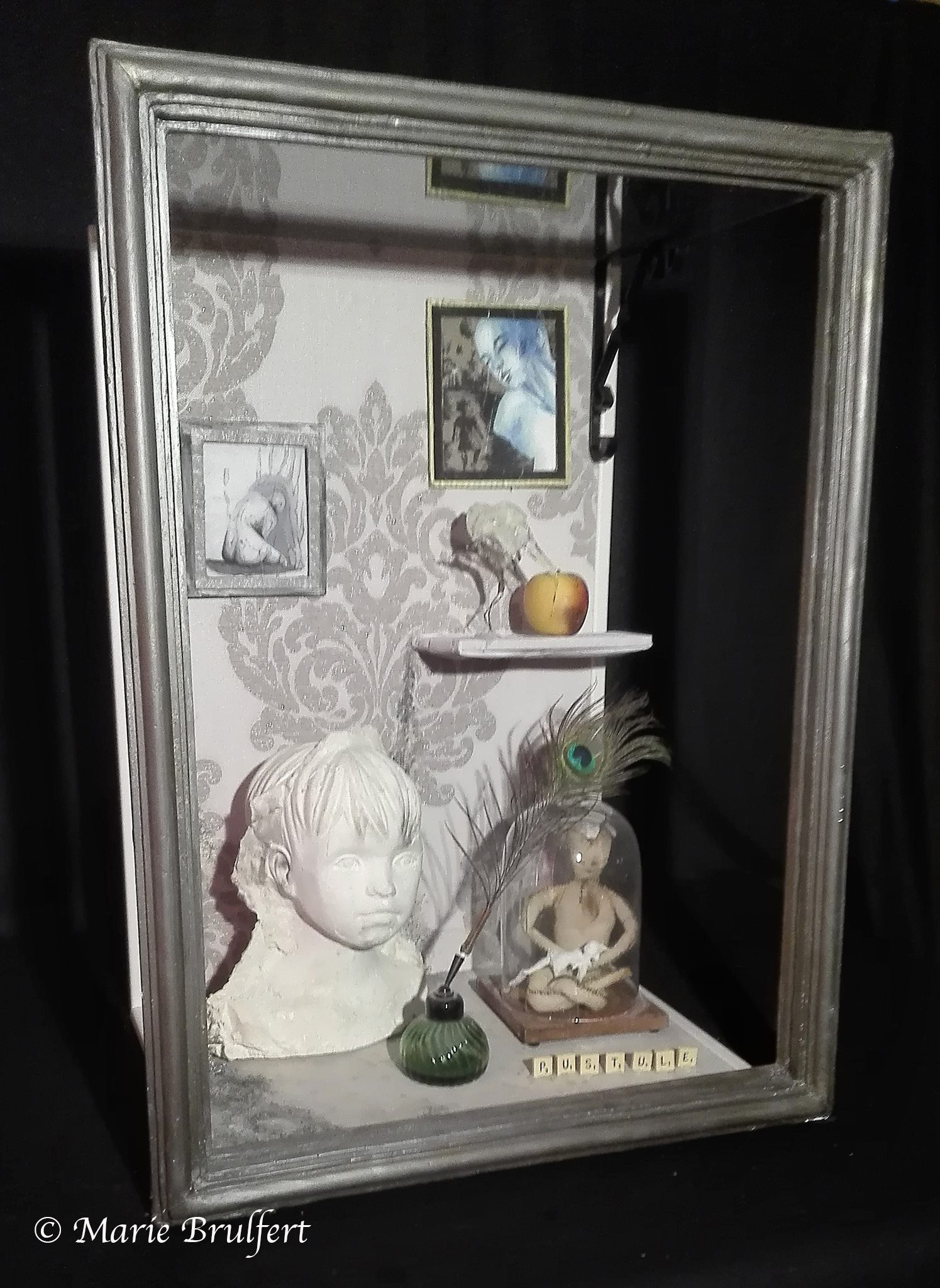( bois, plexiglas, papiers, fer, plâtre, cire, tissus, résines, sables, scrabbles…)